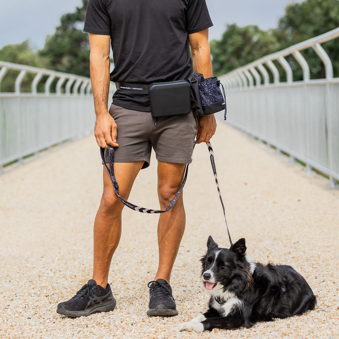 Love the silicone training pouch and how easy it is to use and clean. And the rest of the bag has room to carry everything else….poo bags, keys, glasses, phone etc