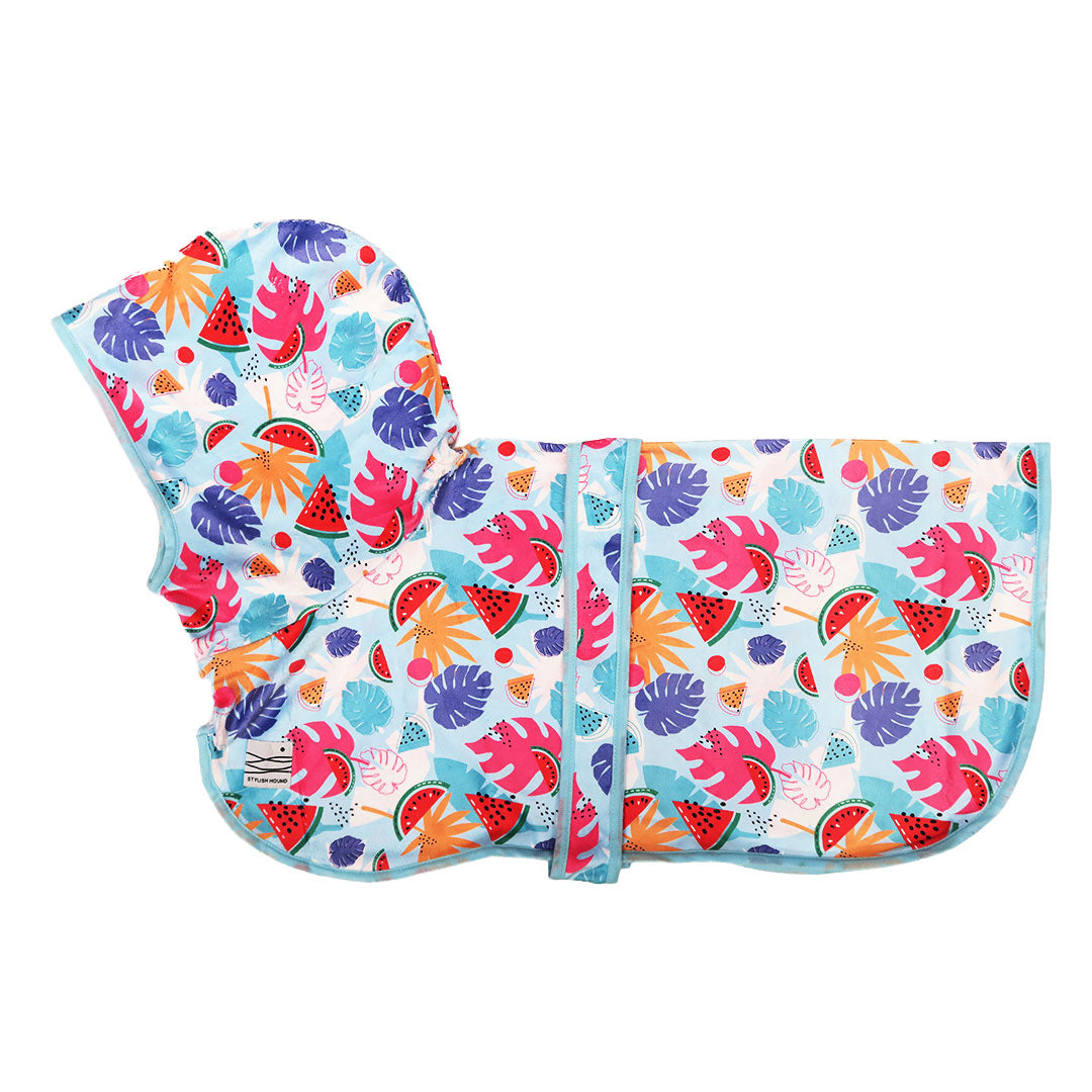 Thank you for your wonderful feedback! We're so glad you love the print and find it useful for your beach trips. Enjoy every moment with your pup in their new robe.