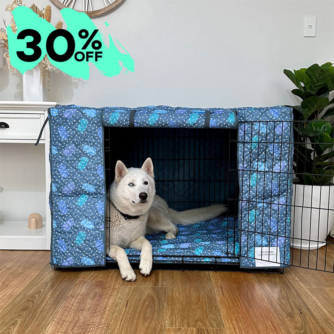 Set up your dog’s cozy crate haven with our quilted crate cover. Drift off to sleep and rest in style with our range of quilted crate covers; a simple and classic style with modern prints to suit any room in your home.