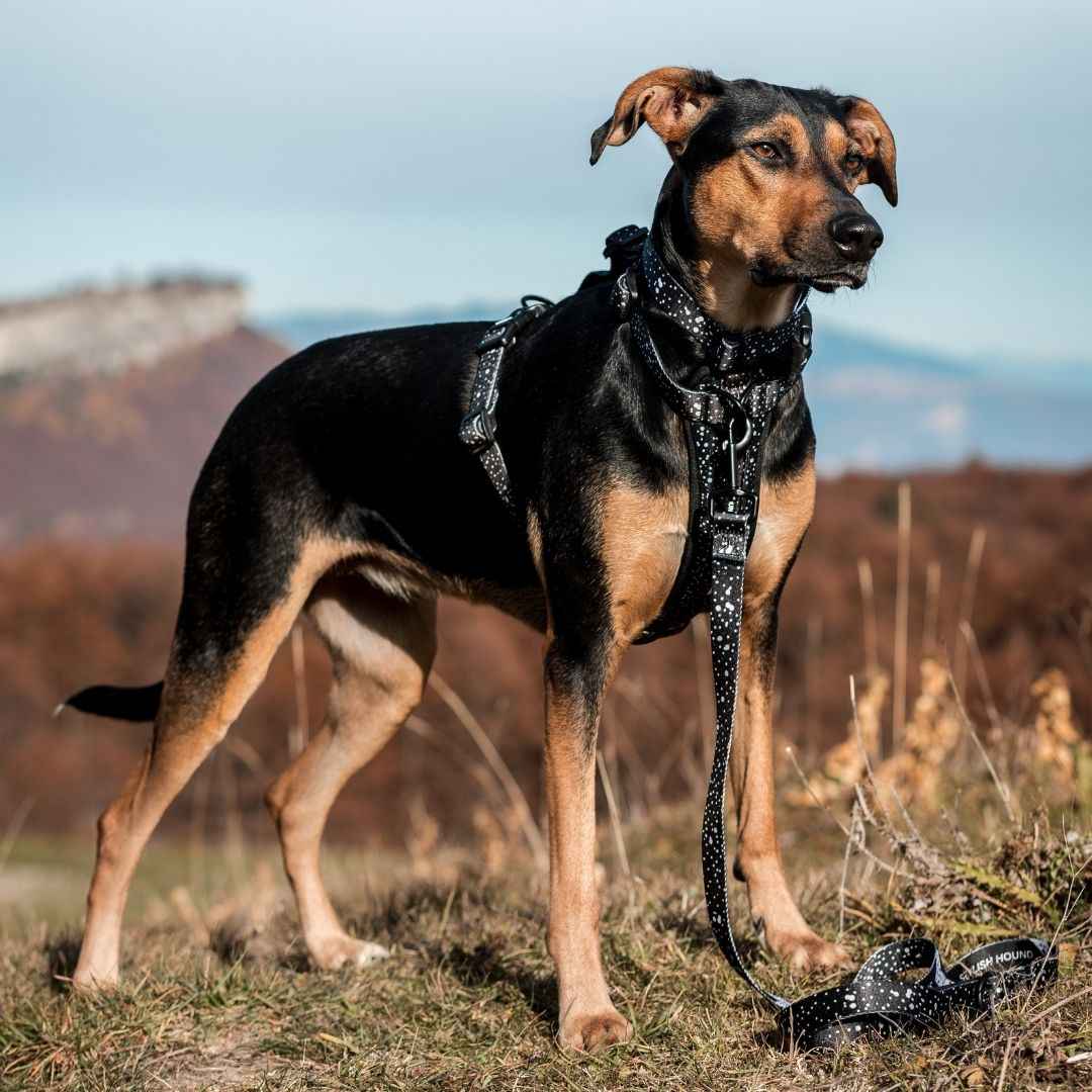 Complete your Stylish Hound Look with a matching harness • D ring to clip the leash to yourself and be handsfree • Padded Neoprene handle for added comfort • Silky polyester finish that is soft on your dog's fur • Double-sided print • Sturdy hardware clip