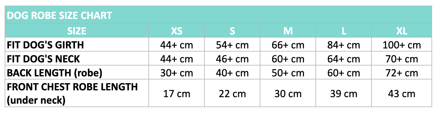 Absolutely love this robe for my babygirl and she loves it too! Perfect for after a shower to not get the entire house wet or after a cheeky beach swim. Super small and compact to bring with us everywhere! Lyla is a female lab with 26kg and wears a size medium :)