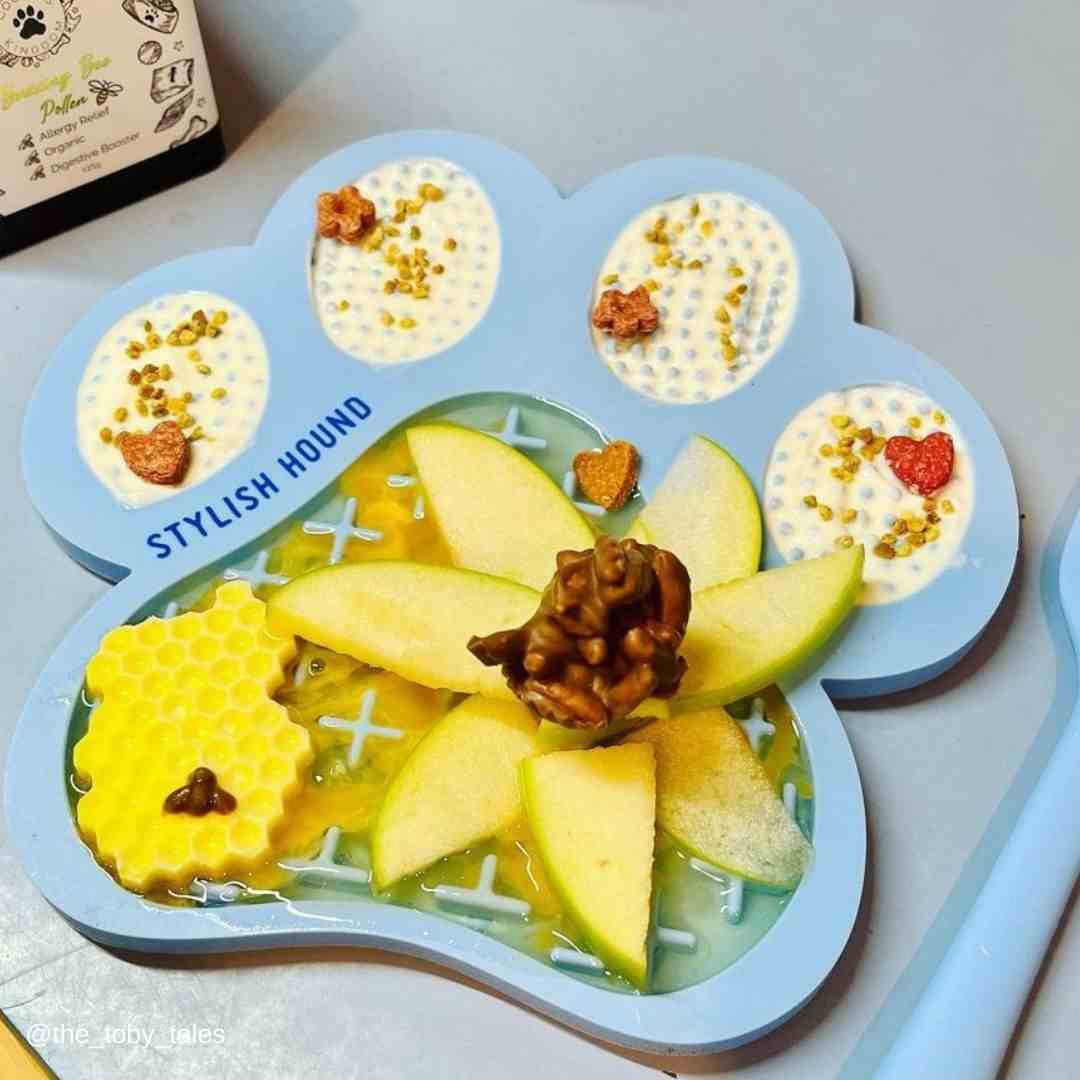 ⭐⭐⭐⭐⭐ "Great boredom buster! Spread some doggy yoghurt, blueberries and tasty treats on the mat with the cute matching spatula, chuck it in the freezer and my Great Dane is occupied for a long-time licking!" - Amy A