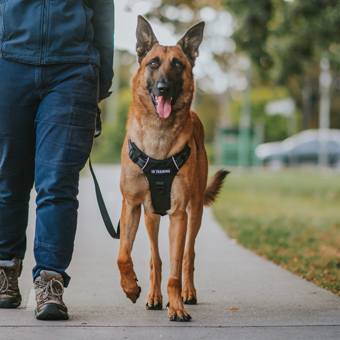 Elevate your dog sport, competition and dog day out with our new Odyssey Personalised Harness. Designed for those who want to add extra personality, let others know to keep distance whilst you are “IN TRAINING”... or simply have your furry friend introduce themselves.