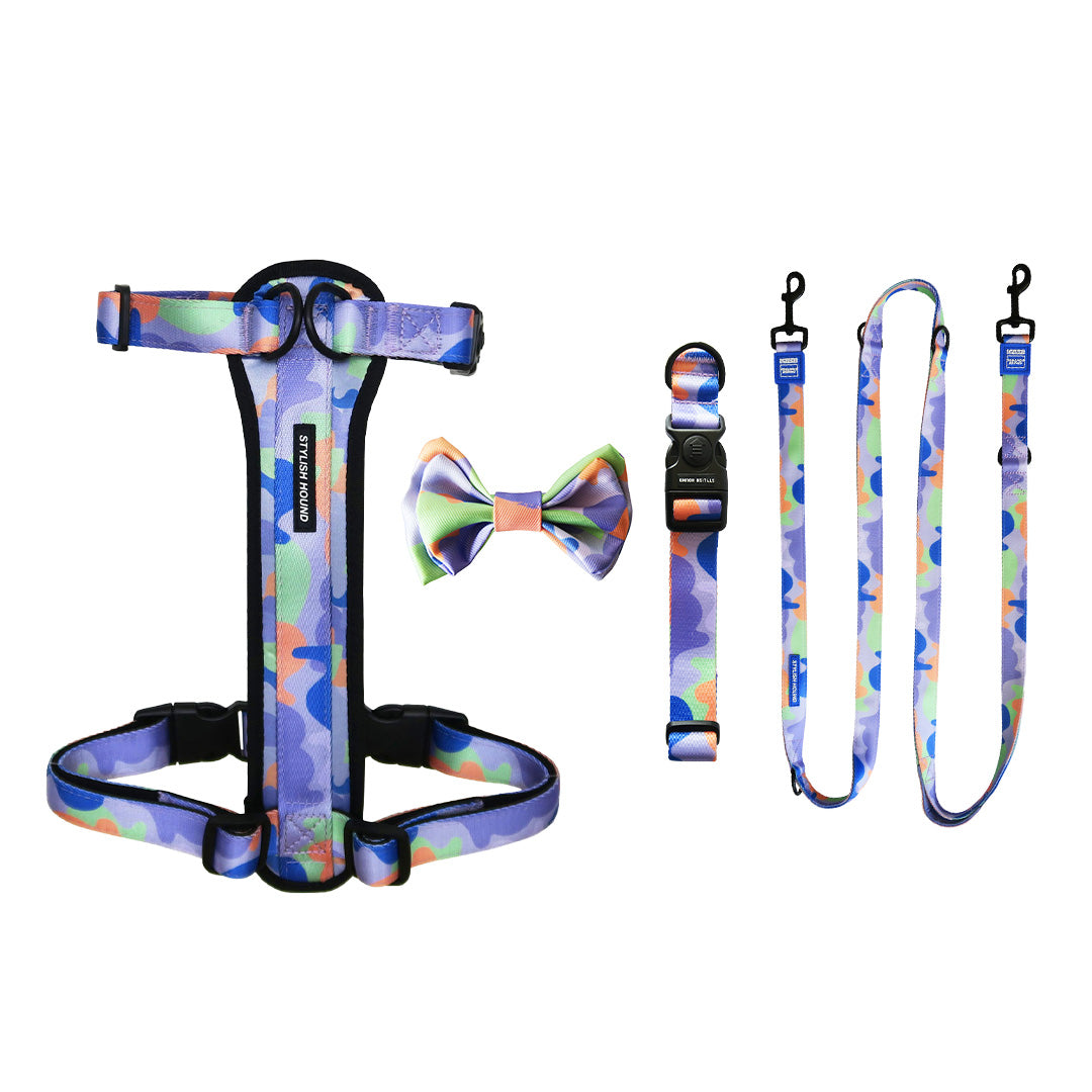 Chest Plate Harness + Leash + Collar + Bow Tie (Colour): Luna