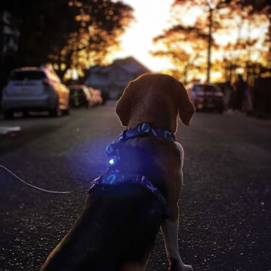 ⭐⭐⭐⭐⭐ "The multicolored night light is fabulous. It is easy to secure on the harness or on your lead. I feel safer, people can see me walking, bikes going pass love it, as they can see the dogs." - Gina K