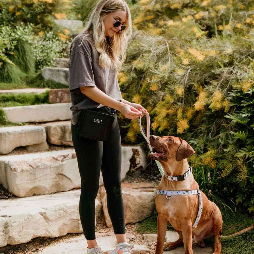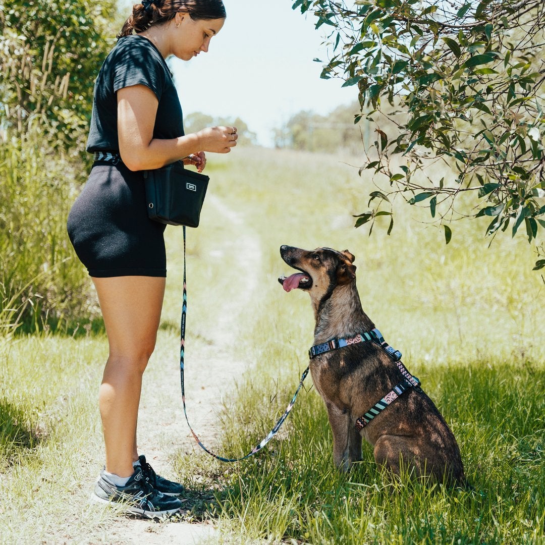 The magnetic front pocket holds up to 4 cups of treats, with a zippered compartment, poop bag dispenser, and adjustable strap for effortless, organised sessions.