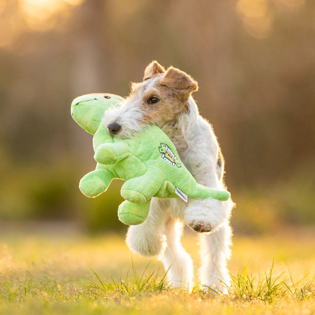 We do not stock “indestructible” or plastic nylon dog toys. Based on personal and veterinary experience, these toys can break dogs’ teeth. Our toys are thoughtfully designed to give your dog a fun, safe chewing experience and will breaking before causing dental injury. Always supervise your dog whilst playing with toys. Inspect and remove any loose pieces before continued use. Due to hygiene reasons, we do not offer refunds.